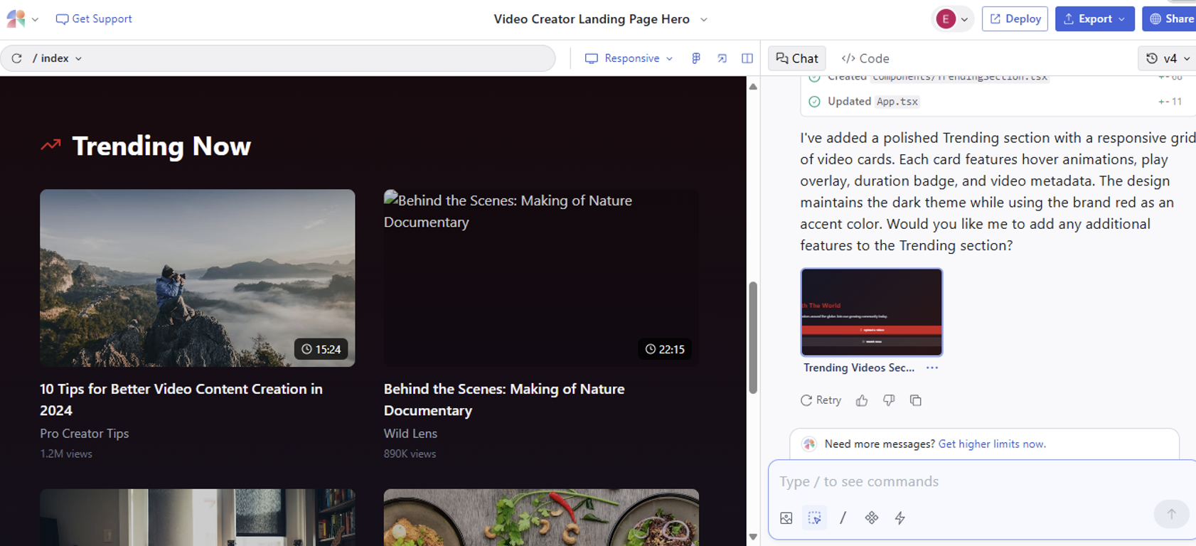 It's a good idea to focus on the hero section first. AI tools usually work better with smaller, focused changes.
